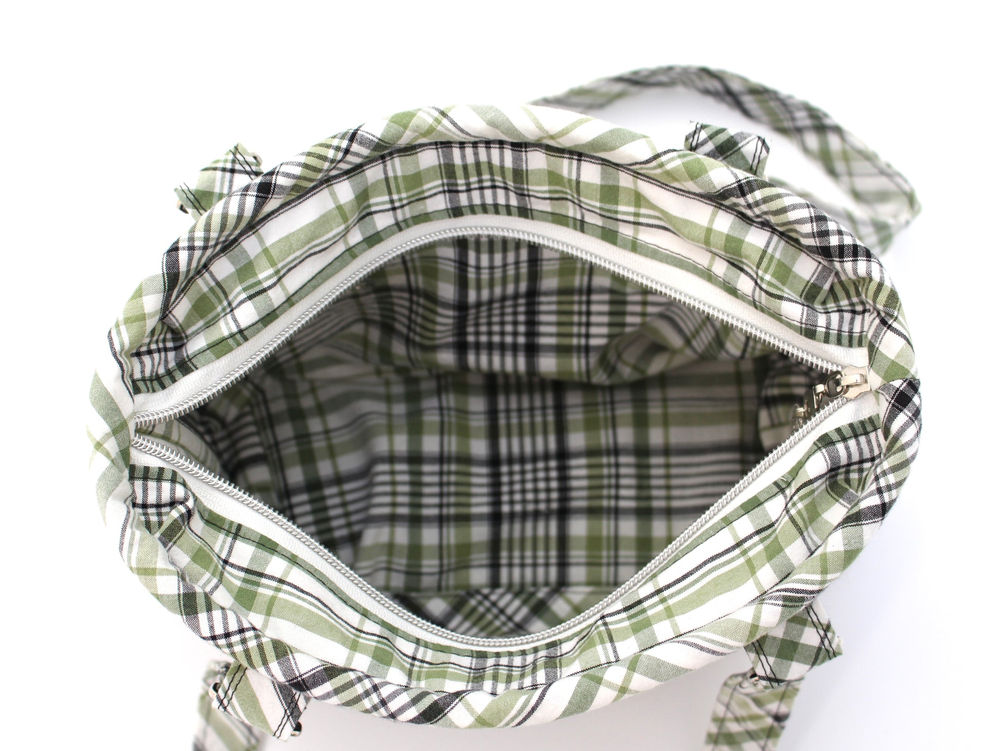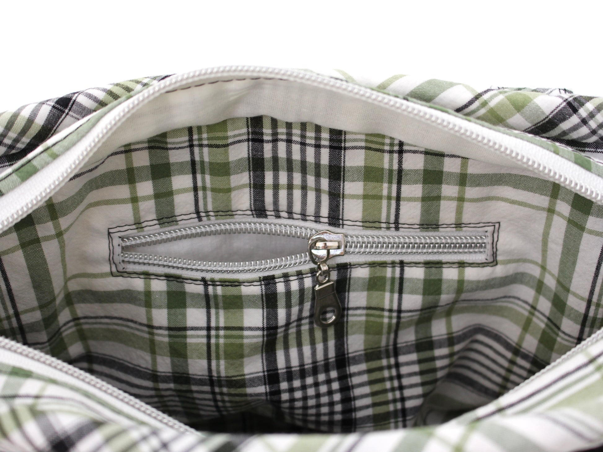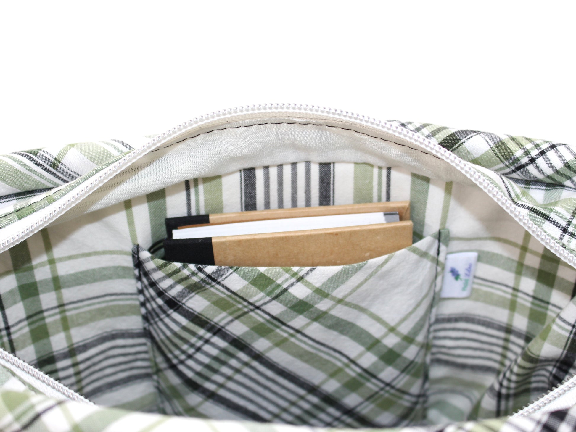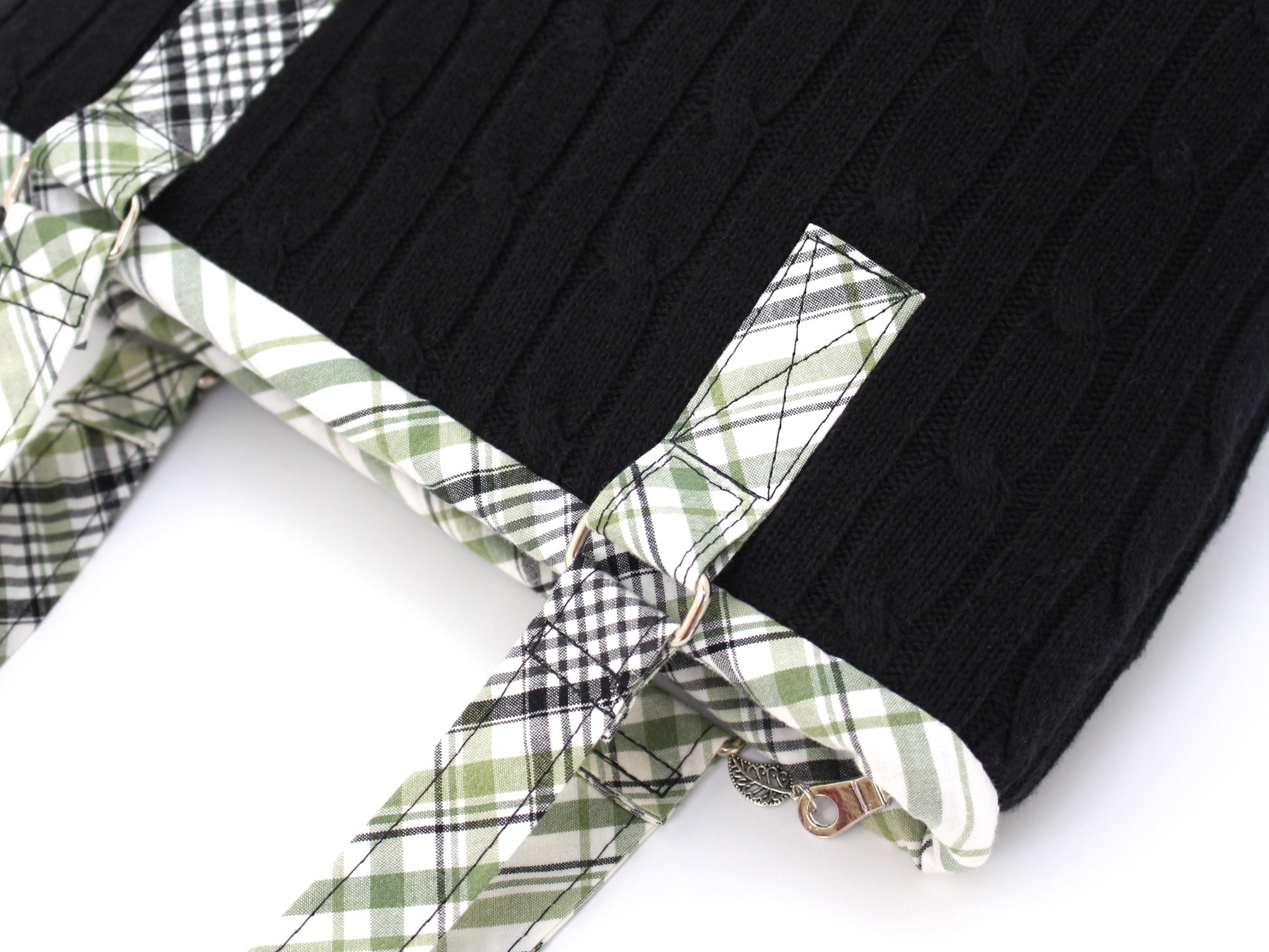 Crafted from upcycled cotton sweater knit with a plaid cotton lining and straps, this Cable Knit Shoulder Bag combines sustainability with structure. A metallic-look nylon zipper secures your belongings, while the foam stabilizer maintains the bag’s shape without adding weight. Inside, two compartments—one zippered and one patch pocket—offer organized storage, ideal for your phone and essentials. Lightweight and easy to maintain, simply spot clean as needed to keep it fresh.
