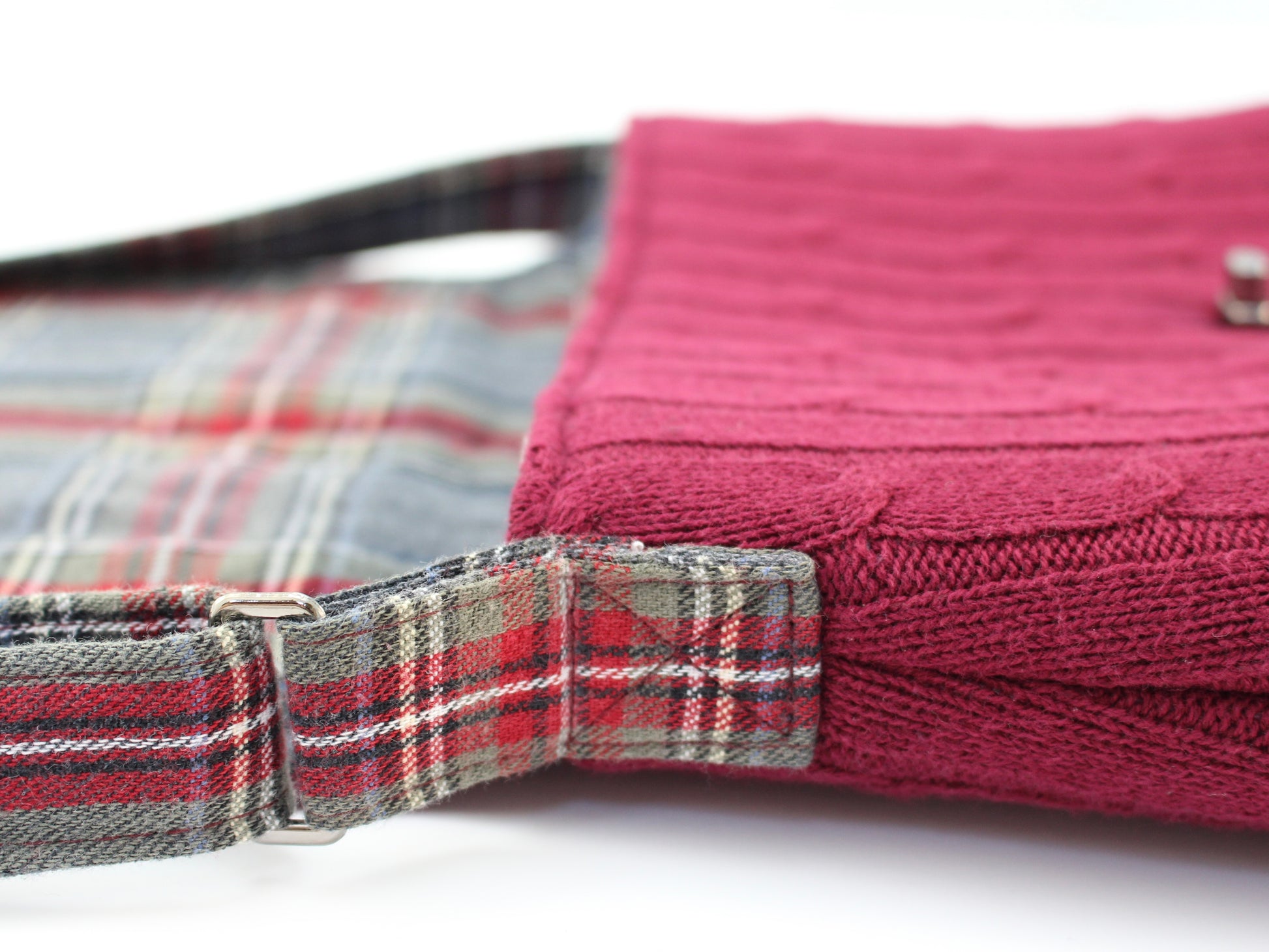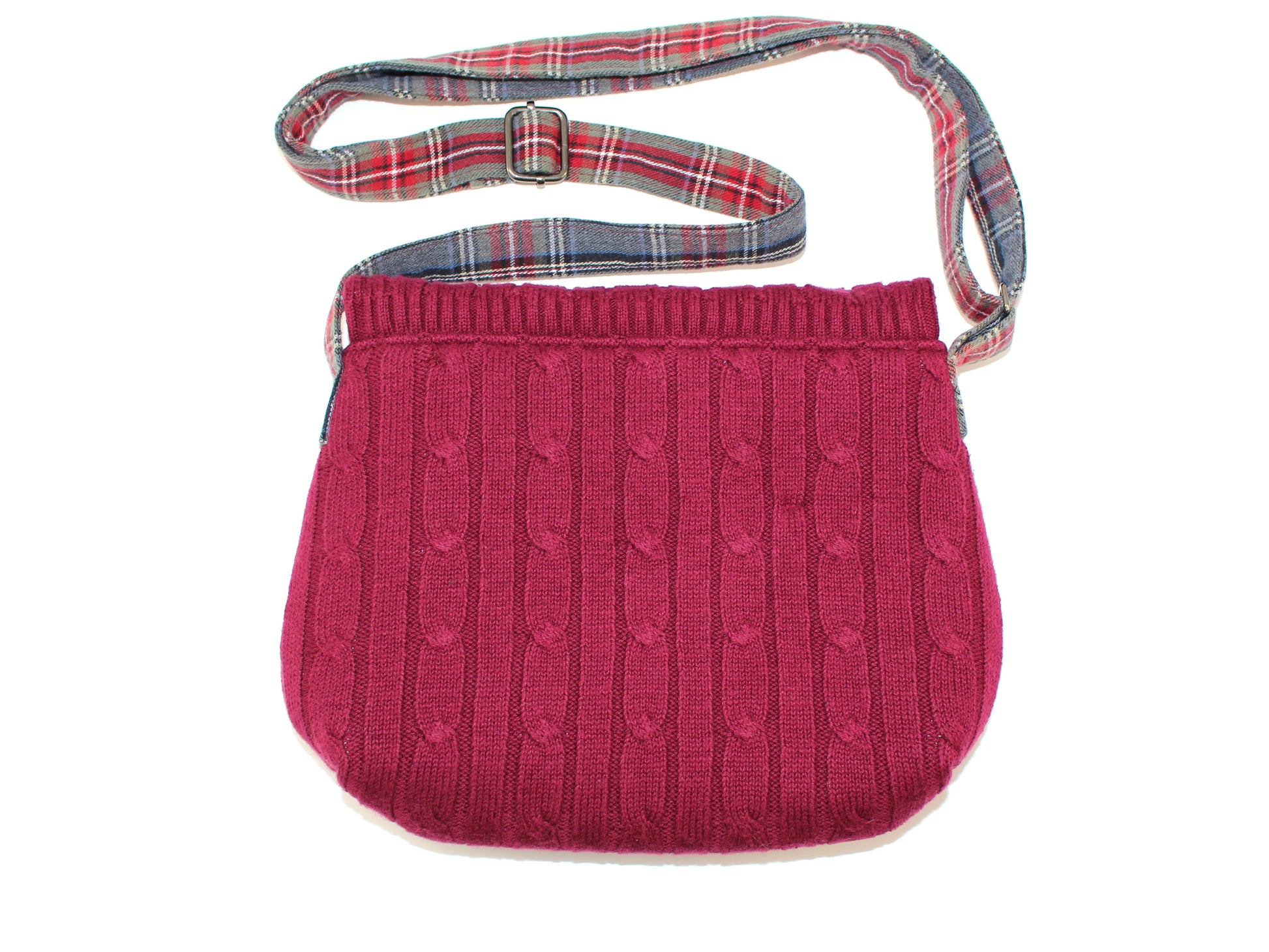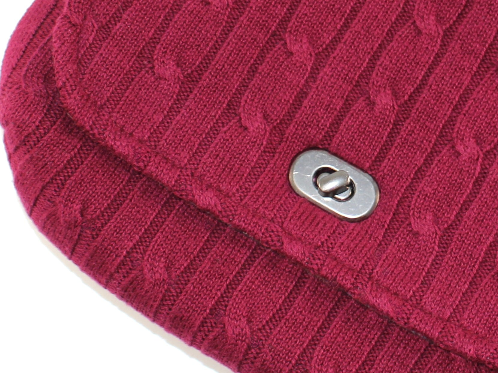 Crafted from upcycled cotton, this Crossbody Cable Knit Sweater Purse features a distinctive cable knit exterior paired with a soft flannel lining and an adjustable strap with a metal slider for a tailored fit. Its lightweight design incorporates a foam stabilizer to maintain structure without added weight. The purse secures with a durable metal turn lock clasp, combining functionality with refined details. Easy to maintain, simply spot clean as needed. This sustainable accessory merges eco-conscious materials with expert craftsmanship for everyday use.