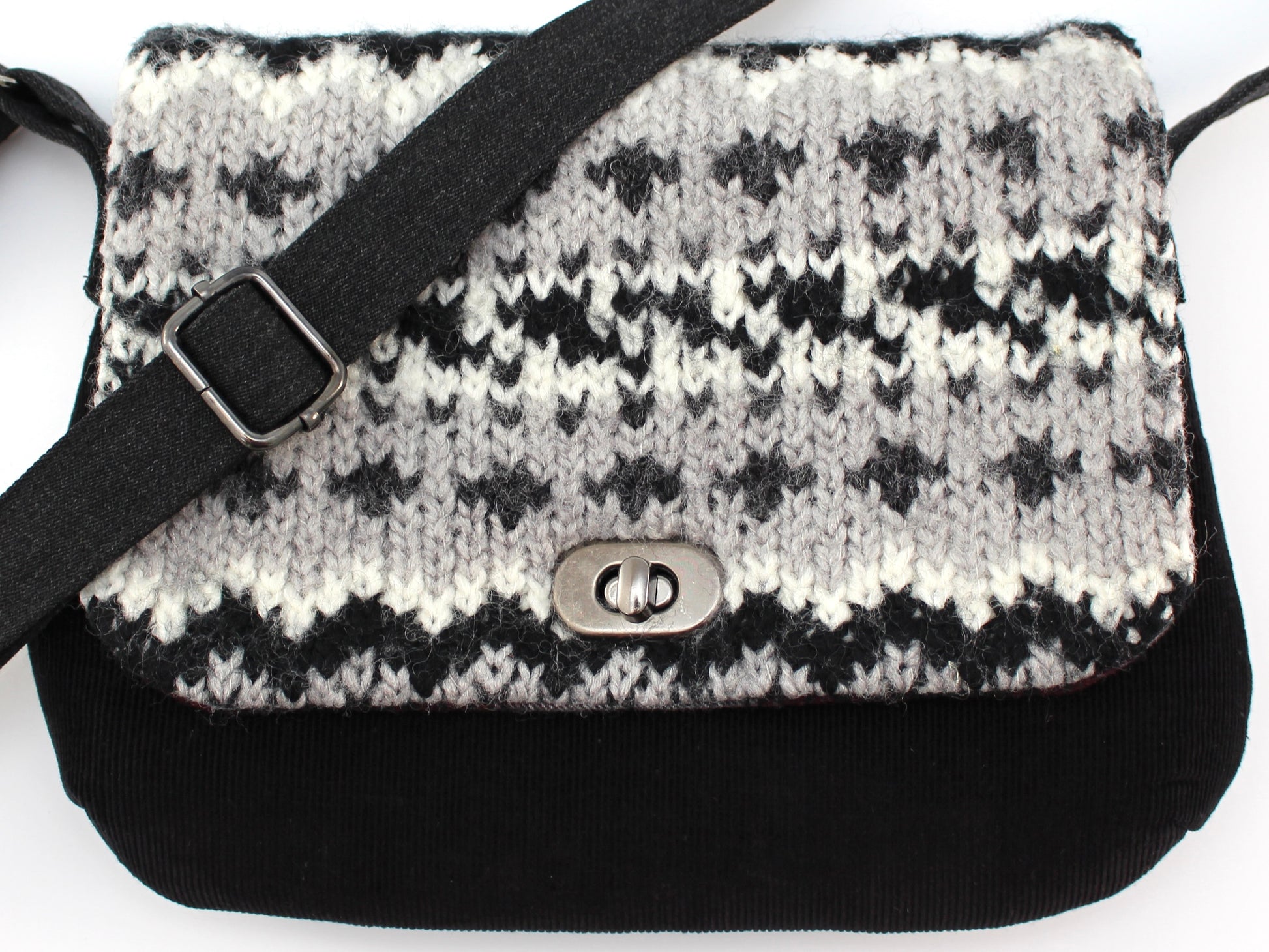 This Crossbody Sweater Purse combines sustainable style and practical design, crafted with upcycled acrylic sweater flap, cotton corduroy body, and cotton flannel lining. Its lightweight structure is reinforced with a foam stabilizer for durability, while an adjustable polyester twill strap with a metal slider ensures a perfect fit. The metal turn lock clasp offers secure closure. Designed for ease of care, it can be spot cleaned as needed, making it an expert choice for eco-conscious, everyday use.