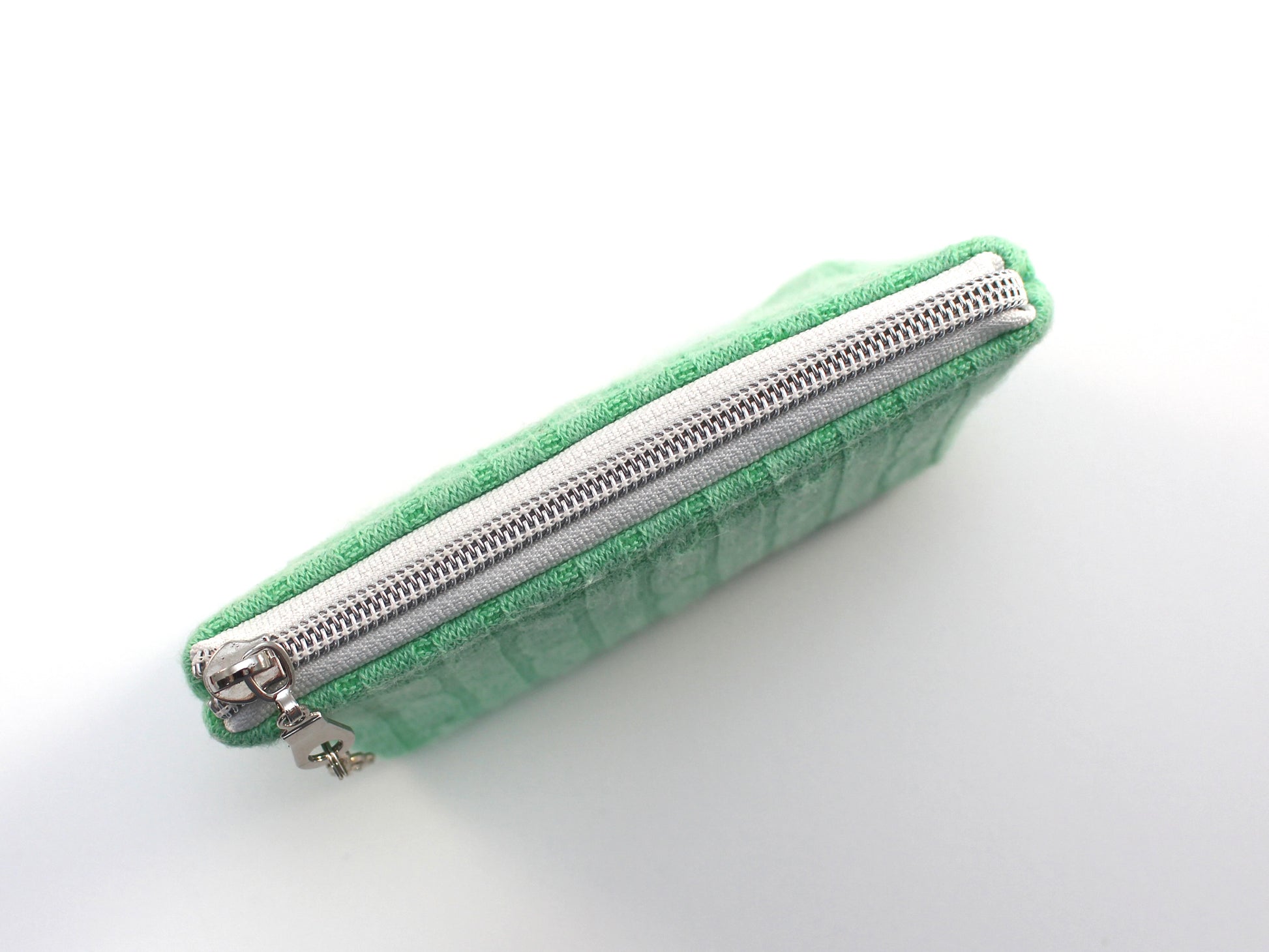 Crafted from upcycled cotton sweater cable knit with a soft upcycled cotton fabric lining, this lightweight Sweater Coin Purse combines sustainability with refined structure thanks to an internal foam stabilizer. It features a durable nylon zipper accented by a delicate feather charm, merging functionality with subtle elegance. Designed for easy care, simply spot clean as needed to maintain its quality and appearance. Ideal for those seeking an eco-conscious accessory that balances style, durability, and expert craftsmanship.
