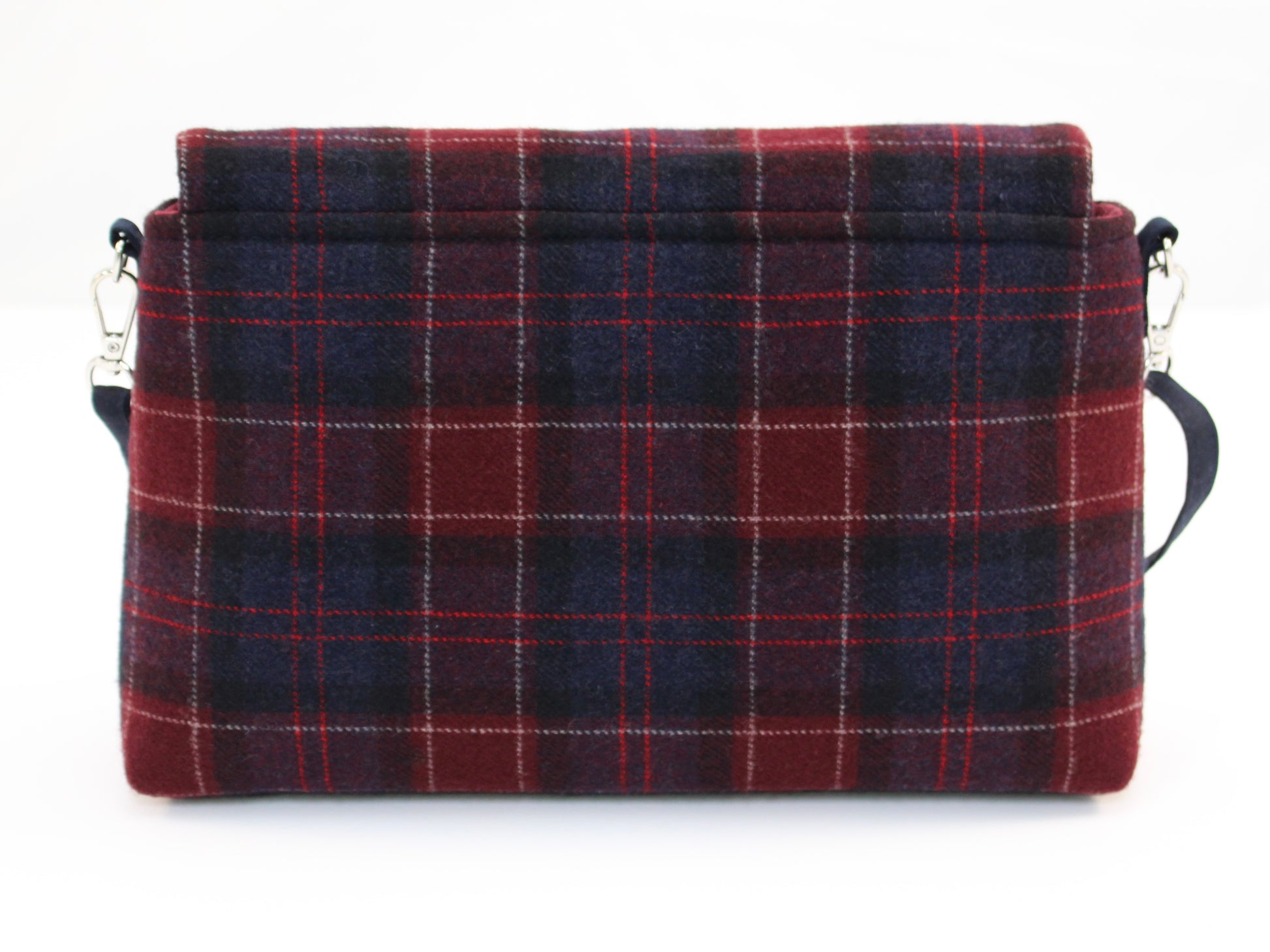 Crafted from upcycled wool with a cotton fabric lining, this Wool Plaid Crossbody Bag combines sustainability and refined design. Its adjustable strap, made from upcycled polyester twill with a metal slider and detachable metal clips, allows transformation into a sleek large clutch. The turn lock clasp secures your belongings, while an interior cotton-lined pocket with a nylon zipper divides and organizes the space efficiently. Lightweight with a foam stabilizer for structure, this bag offers durability and functionality. Spot clean as needed to maintain its quality and timeless appeal.